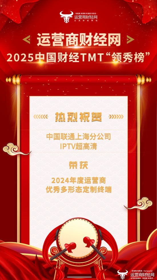 1月16日,万众瞩目的2025中国财经TMT“领秀榜”盛典隆重召开,本次盛典通过线上直播的方式进行。盛典期间,主办方运营商财经网公布了各大奖项的获奖名单,中国联通上海分公司榜上有名!