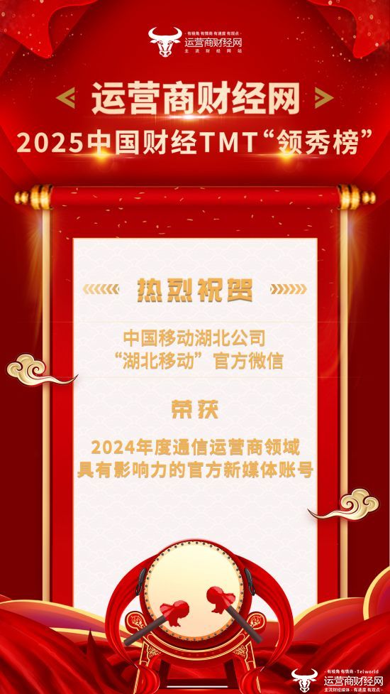 其中,中国移动湖北公司的“湖北移动”官方微信账号荣获“2024年度通信运营商领域具有影响力的官方新媒体账号”奖项!