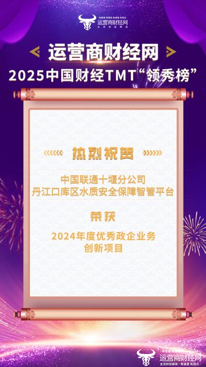 在盛典的现场,运营商财经网正式公布了获奖企业的名单。其中,中国联通十堰分公司的丹江口库区水质安全保障智管平台项目荣获“2024年度优秀政企业务创新项目”奖项。