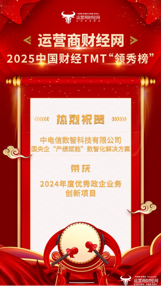 经过激烈角逐,中电信数智科技有限公司的国央企“产绩赋能”数智化解决方案,荣获“2024年度优秀政企业务创新项目”奖项!