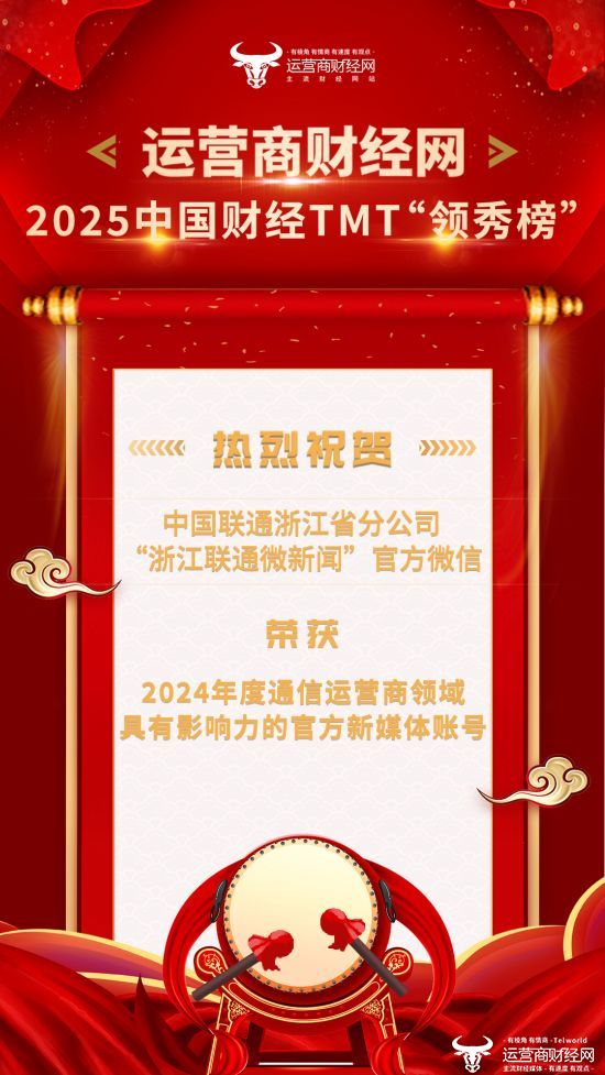 盛典期间,万众瞩目的年度评选获奖名单正式出炉!其中,中国联通浙江省分公司的“浙江联通微新闻”官方微信荣获“2024年度通信运营商领域具有影响力的官方新媒体账号”奖项!