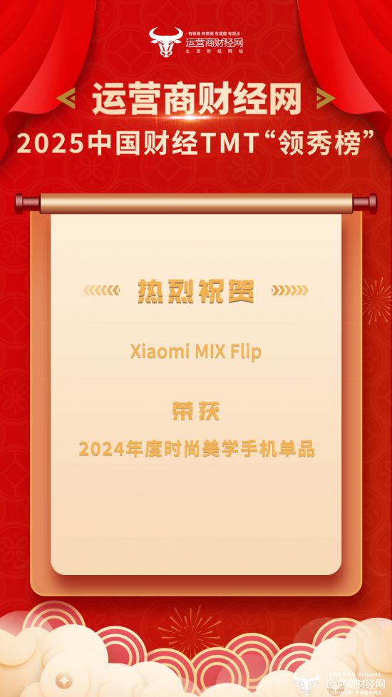 最终,Xiaomi MIX Flip荣获由运营商财经网颁发的“2024年度时尚美学手机单品”奖。