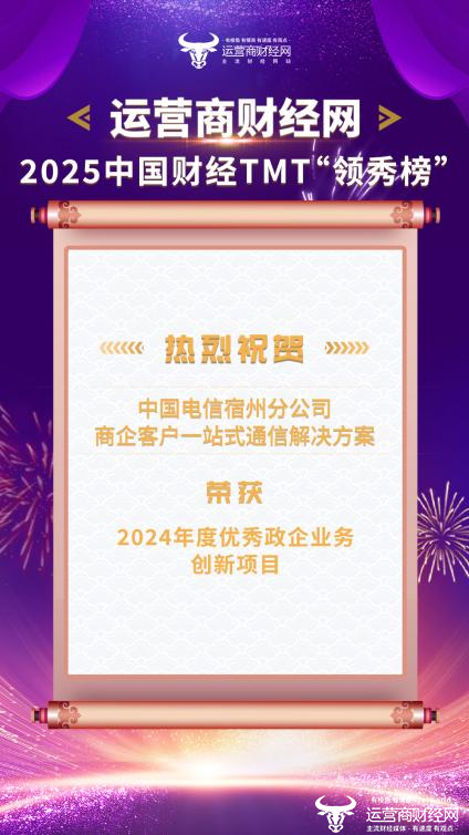 其中,热烈祝贺中国电信宿州分公司的商企客户一站式通信解决方案,荣获“2024年度优秀政企业务创新项目”奖项。