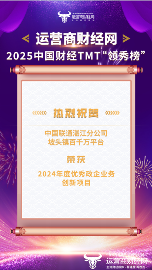 经过激烈角逐,中国联通湛江分公司的坡头镇百千万平台荣获“2024年度优秀政企业务创新项目”奖项!