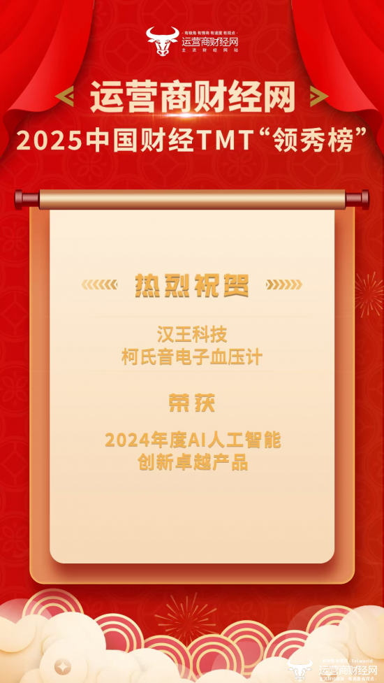 其中,汉王科技打造的柯氏音电子血压计,荣获“2024年度AI人工智能创新卓越产品”奖项。