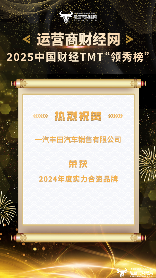 由权威媒体运营商财经网倾力打造的2025中国财经TMT“领秀榜”盛典于1月16日隆重召开,揭晓了在年度评选中获奖的优秀企业以及优秀产品。凭借着在过去一年不俗的表现和卓越的业绩,一汽丰田汽车销售有限公司荣膺“2024年度实力合资品牌”奖项,恭喜!