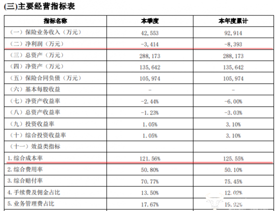 此外,据其2024年第三季度偿付能力报告显示,在前三季度公司累计净亏损0.84亿元,综合成本率为125.55%。一般来说,综合成本率越高公司盈利能力越弱。
