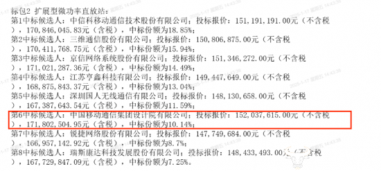 经评审,标包1共有8家厂商成功中标,分别为三维通信、中信科移动、京信网络、江苏亨鑫、深圳国人、中国移动通信集团设计院有限公司、瑞斯康达、锐捷;