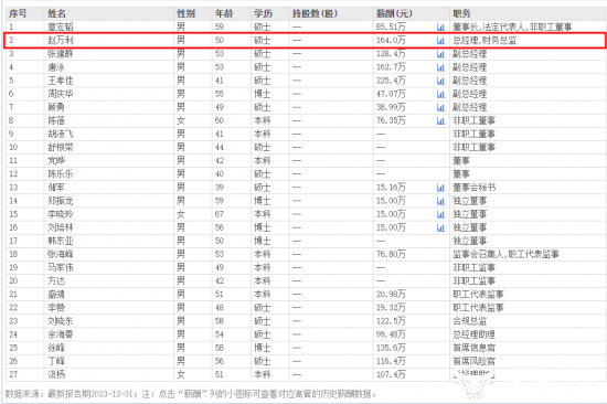 据东方财富网显示,赵万利在2023年的薪酬位164万元,在华安证券的高管团队中位列第二,不如副总经理王孝佳的薪酬225.4万元。