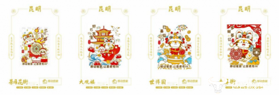 值得一提的是,无论你是去参加灯会活动还是非遗活动,你都有机会领取以云南移动IP“豹豹”为主要形象的系列“豹款”新春套印,它融合了传统新春元素——对联、剪纸、年画、灯笼、鞭炮等,以及蕴含云南独特风情的本土符号——花鼓、瓦猫、大观楼、海鸥等昆明标志性景观和非遗文化,同时巧妙嵌入了云南移动爱家品牌的核心理念,营造浓厚春节氛围的同时,传递出云南文化的独特魅力和移动爱家品牌的温暖理念。