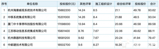 然而,中移集成以1520.1万元的报价排名第二。从报价上来看,明明中移集成的报价比海康威视低了68万元,同时,中移集成也是该领域实力强劲的供应商,却还是落败于海康威视,根据中标候选人名单可见,两者最后的评选分数只差0.58分,实在可惜。