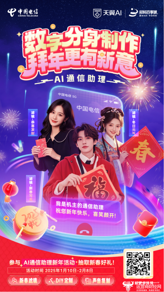 瑞蛇轻舞迎新岁,通信助理“新”意传。在新年的拜年祝福中,号百通信助理能够不再局限于传统的形式,而是通过AI数字分身以一种全新的、富有创意的方式,将新年祝福送到亲朋好友的心中。用科技点亮新春,用创意传递心意,通信助理让每一个新春来电都成为了独一无二的新年记忆。新年拜年“新”意十足,让新年更加精彩、更加难忘。
