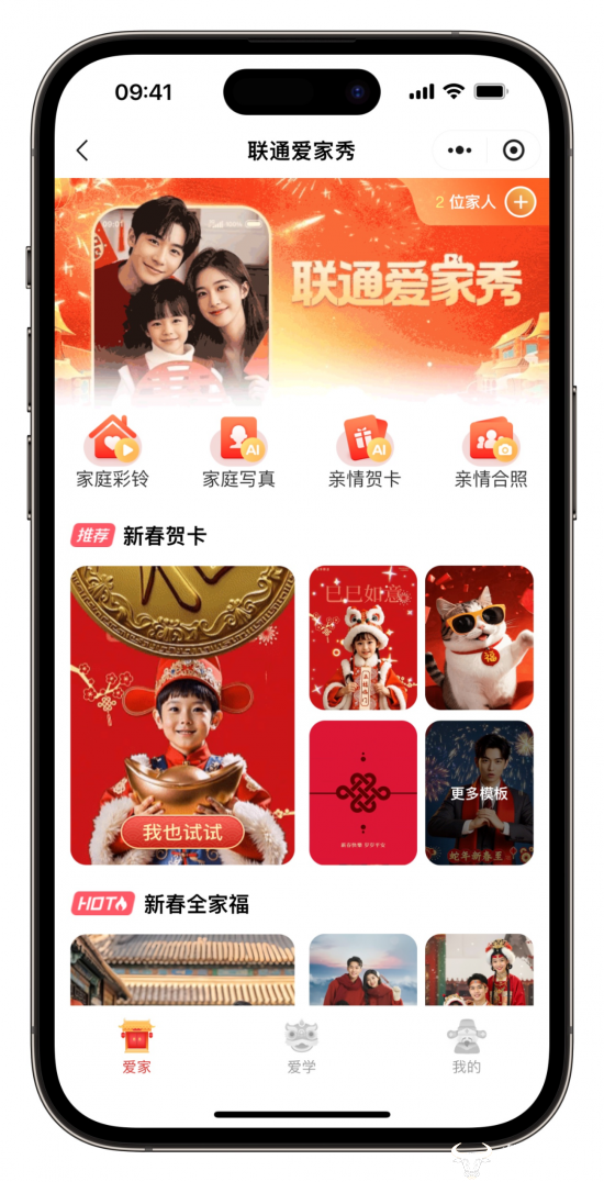 蛇年春节已进入倒计时,在这个充满欢乐与团聚的节日,联通“爱家秀”以“爱家、爱学、爱生活”为核心理念,通过全场景家庭服务,助力用户的春节时光焕发别样的精彩,让每个人、每个家庭过“品质春节”、“潮流春节”、“实惠春节”,让蛇年春节变得更加有趣和难忘!