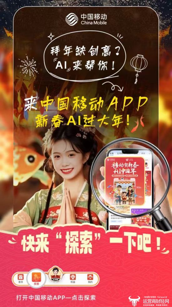 科技赋能,让年味更浓!蛇年新春,中国移动APP带你解锁拜年新潮流,让新春祝福变得更有趣、更有温度,创意十足、惊喜满满。快来中国移动APP,用AI开启蛇年鸿运吧!