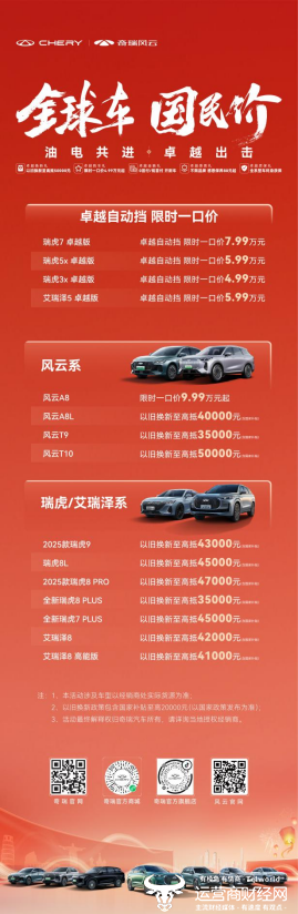 豪礼汇聚,购车无忧!值此新春开工大吉之时,奇瑞携手旗下多款明星车型,以亲民至极的“国民价”,助力用户畅享安心出行,不仅深刻彰显了奇瑞对品质出行的执着追求,更是其以全新面貌为用户献上的一份出行贺礼。这个春天,就让奇瑞与你携手启程,共赴美好旅程吧!