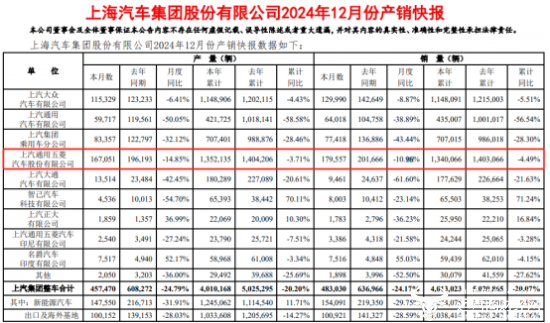 不过,与上汽集团内部其他品牌相比,上汽通用五菱的下滑幅度不算大,比如上汽乘用车去年的销量为70.7万辆,同比下滑28.3%,上汽通用的降幅更是达到了56.54%,上汽大通也下滑了21.63%。