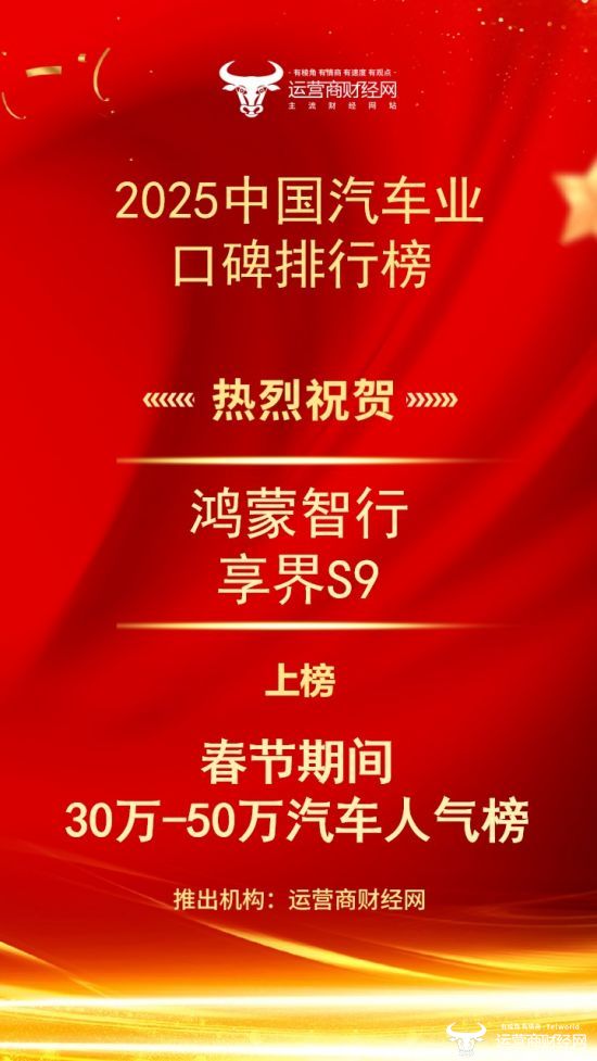 由运营商财经网独家打造的“2025中国汽车业口碑排行榜”系列榜单近期正在持续推出!日前,该系列榜单之一“春节期间30万-50万汽车人气榜”正式发布,共有十款热门车型登上了此榜单。