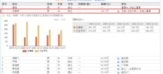 据东方财富网统计数据显示,沈春晖在2023年的薪酬达到了140.9万元,是红塔证券高管团队中最高的。纵观沈春晖2019年至2023年的薪酬发现,其在2019年的薪酬高达259.2万元,之后2020年骤降至104.6万元,随后四年薪酬逐渐增长。