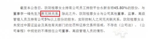 据了解,欧阳桂蓉并不是普通高管,她是公司创始人李一峰的表妹。