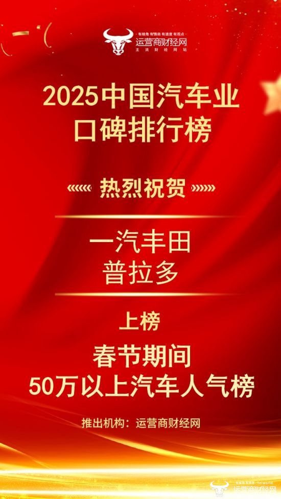 日前,国内知名财经媒体平台——运营商财经网隆重推出了“春节期间50万以上汽车人气榜”,共有10款车型出现在榜单名单上,其中就包括了一汽丰田普拉多。