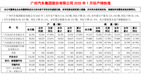 近日,广汽集团公布了2025年1月份的产销快报,引发关注。运营商财经网注意到,广汽本田依旧没有止住销量下滑趋势,并且下滑幅度令人吃惊,接下来运营商财经网试图对其销量情况进行揭秘。