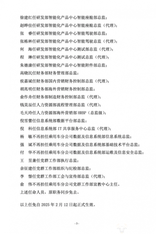 从网上流出的图片来看,此次干部任免由上汽集团总裁贾建旭亲自签发,自2025年2月12日起正式生效,不仅包括荣威、名爵、飞凡等核心品牌在销售、市场、品牌、网络发展等多个关键部门的高层管理人员,更是将研发、营销、产品、人力资源、财务等部门纳入了重组范围,涉及63位中高层干部,可见此次调整的规模之大。