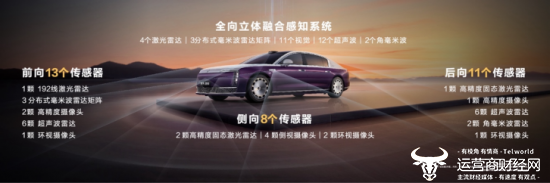 尊界S800按照L3智能驾驶架构设计,配备了4颗激光雷达、1套分布式毫米波雷达、11颗视觉摄像头、12颗超声波雷达、2颗角毫米波雷达,进一步提升车辆全向防碰撞能力。同时采用全域冗余安全设计,确保车辆在极端情况下的安全性。利用侧向、后向的3颗高精度固态激光雷达,可实现更精准的负向、悬空障碍物识别,低速行驶状态下主动规避沟渠、台阶、充电桩、消防栓、路肩等磕碰风险,还可提前识别车辆前后夹击风险,自动紧急转向避险。凭借1套分布式毫米波雷达,使得前向探测距离更远,响应更快,在雨雾沙尘天气下,可识别目视不可见车辆,自动刹停,规避碰撞风险。
