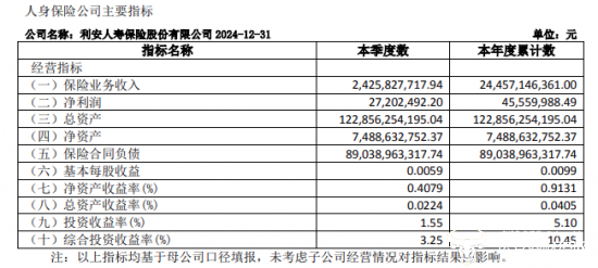 值得一提的是,据利安人寿公布的2024年第四季度偿付能力报告显示,2024年利安人寿保险业务收入为244.57亿元,与上年同期的220.16亿元相比有所增长;但其2024年的净利润约为0.46亿元,与上年同期的0.62亿元相比微降。可以看出,利安人寿在2024年出现了“增收不增利”的情况。