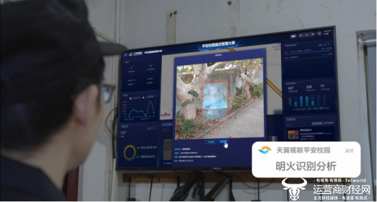 “东南角绿化带有火源风险”,识别到明火,天翼视联平安校园立即弹出告警信息并推送至管理人员的手机上,学校安保人员根据定位提示赶往现场熄灭明火,原来是被丢弃的烟头点燃了干草,差点引起火灾。