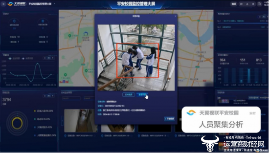 一般的摄像头,往往只能在事件发生后进行回看,利用人工分析来追溯原因,但在事件发生时无法及时干预。天翼视联平安校园叠加AI识别能力,相当于给摄像头装上“智慧大脑”,实现校园环境的实时监管,多场景识别、全方位覆盖,帮助校园管理人员及时发现安全隐患。