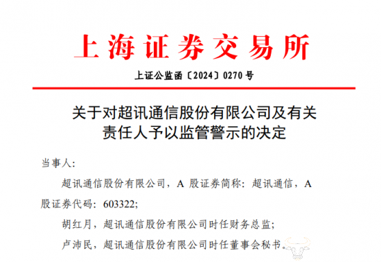 由此,对超讯通信公司及时任财务总监胡红月、董事会秘书卢沛民予以监管警示。