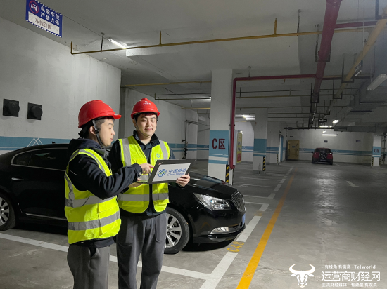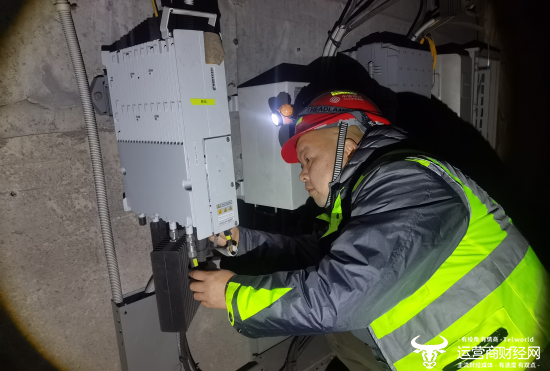 (湖北移动网络工程师在地下停车场检查通信配套设施状况)