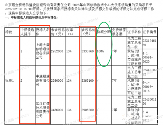 近日,山西移动发布“2025年数据中心光伏系统购置的采购项目”中标结果。中国电信旗下公司及多家知名厂商都来参选,结果怎么样呢?