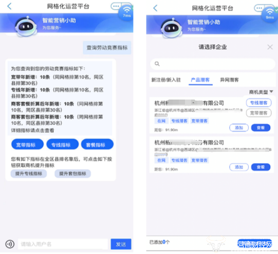 “传统一线获客主要是通过营销管理员筛选客群批量下派,依赖人工经验,获客时效性慢、针对性不足。通过AI商机智能挖掘,能够根据一线生产业绩指标智能推荐最符合要求的商机潜客,获客时效从天级降到分钟级。”浙江移动工作人员介绍。此外,ChatCRM还能生成动态话术,并在自然语言对话中解析出关键词,通过结合营销推荐知识库的智能检索,精准匹配客户需求,提升营销推荐成功率。