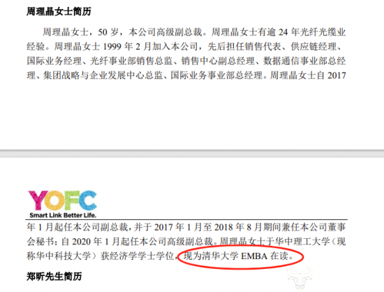 值得一提的是,2023年8月2日,长飞光纤第四届董事会第一次会议决议公告显示,当时周理晶在读清华大学EMBA,至于是否读完了,还没有相关信息。