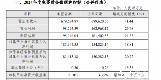 另外,据长江证券发布的2024年度业绩快报显示,公司2024年的额营业总收入约为67.97亿元,同比下降1.44%;归属于上市公司股东的净利润为18.39亿元,同比增长18.81%。