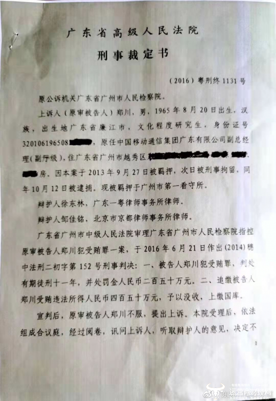 距离广东移动原副总经理郑川出事被查已过去11年,按时间推算,其应当快要出狱了。然而这起案件与其他运营商高管出事悔过认罪不同,郑川自审查到判刑,本人一度坚称无罪,其妻子至今都在为其“伸冤”,具体情况如何?