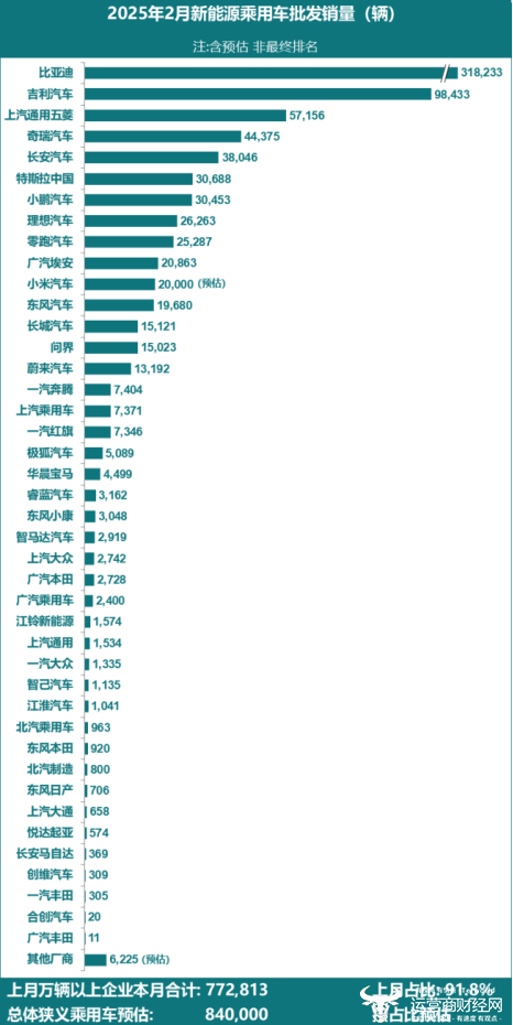 近日,乘联会公布了2025年2月新能源车乘用车批发销量,引起了不小的关注,具体都是什么情况?