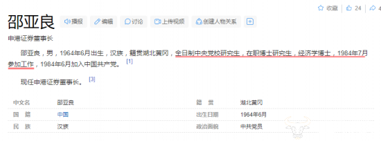 据百度百科显示,邵亚良于20岁开始参加工作,是全日制中央党校研究生,拥有在职博士学位。