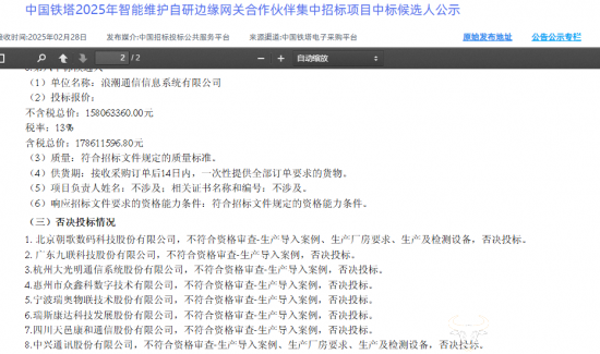 据了解,项目全称为“中国铁塔2025年智能维护自研边缘网关合作伙伴集中招标项目”,项目规模很大,最高投标限价为2.14亿元(含税),共有14家厂商参与投标。