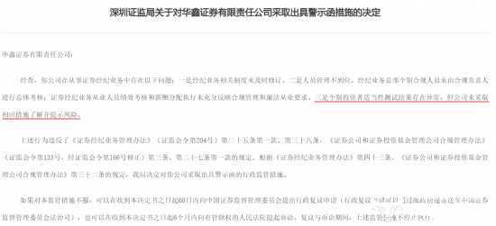 2024年12月20日,深圳证监局发布关于对华鑫证券采取出具警示函措施的决定,显示华鑫证券在从事证券经纪业务中存在三项问题: