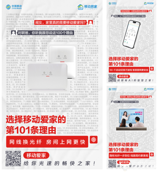 山东移动独家推出“选择移动爱家的 101个理由”,从新标识、新入口、新产品、新服务、新生态等方面深度解读了移动爱家的优势,在加深用户群体对品牌的认知的同时,也让用户买得更放心、用的更安心。