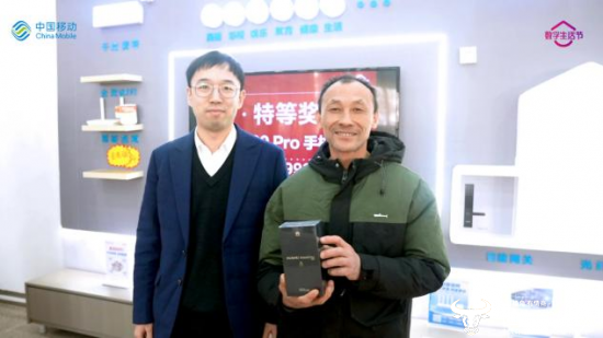 活动现场,办理过福包后的用户们纷纷拿出手机扫抽奖海报二维码参与抽奖,当天上午,记者亲眼见证了首位特等奖幸运用户诞生,来自潍坊的杜先生成为活动首日特等奖华为Mate60 Pro手机的获得者,随即在现场领取到了这部“遥遥领先”的新手机。