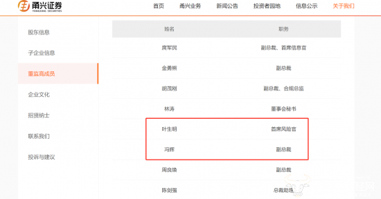 近期,甬兴证券的高管名单。再次发生变动,在其官网上,首席风险官的人选,变为叶生明,排位在副总裁冯辉之前。