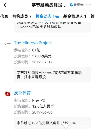 融资机构显示为字节跳动战略投资部,而纵观其投资动态,对虎扑这次的投资都属于投资历程中金额较大的一笔。