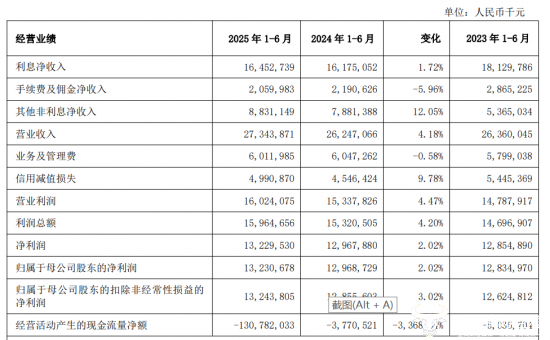 此外,上海银行此次发布的2025年半年度报告也值得一提。该行在上半年的业绩情况总体稳健,营业收入约为273.43亿元,较上年同期增长4.18%,同时今年上半年的净利润约为132.29亿元,与上年相比也有一定的增长。