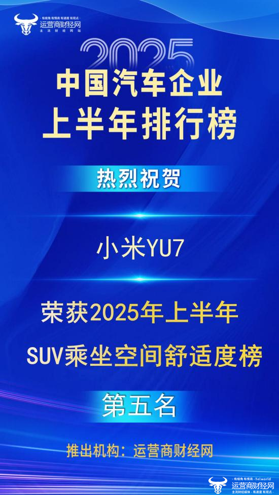 如今,“空间自由”“移动卧室”已然是众多SUV的宣传热点之一,更大的空间表现也为家庭出行和露营旅行带来了更多可能,许多消费者在购车时都会格外注意车内空间大小。依据市场趋势,运营商财经网整理发布了“2025年上半年SUV乘坐空间舒适度榜”!小米YU7斩获第五名!