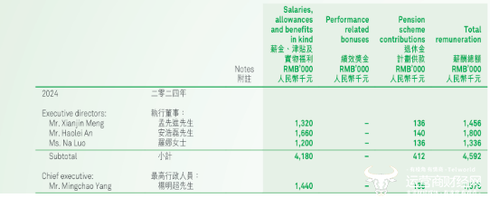 另外两位副总裁安浩磊和孟先进,2024年薪酬分别为180.0万元、145.6万元,相较于2023年的262.0万元及220.5万元,分别下降了82万元、74.9万元。