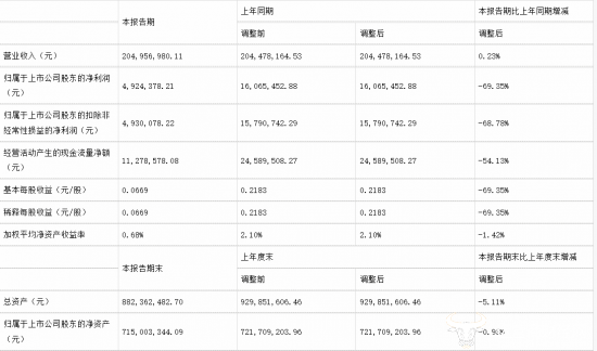 财报数据显示,公司上半年实现营业收入2.05亿元,同比微增0.23%;但归母净利润仅492.44万元,同比大幅下降69.35%,扣非净利润降幅也达到68.78%。