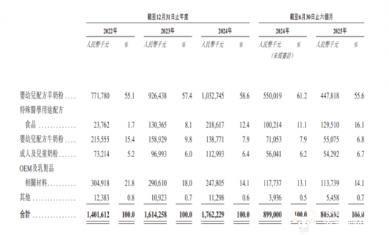 但今年上半年,婴幼儿配方羊奶粉收入为4.48亿元,虽营收占比仍超过半数,但相较于去年同期的5.50亿元,同比下降了18.5%。